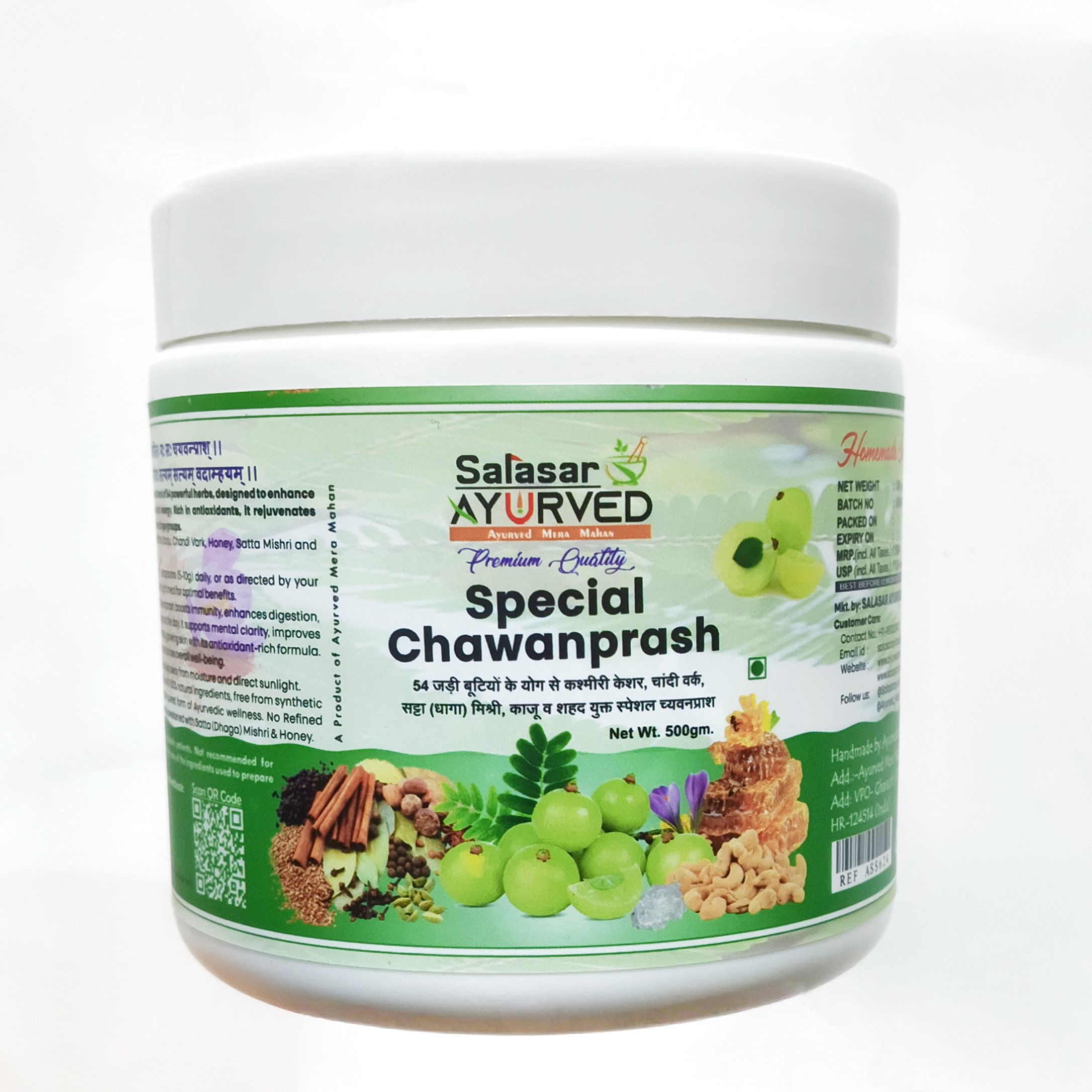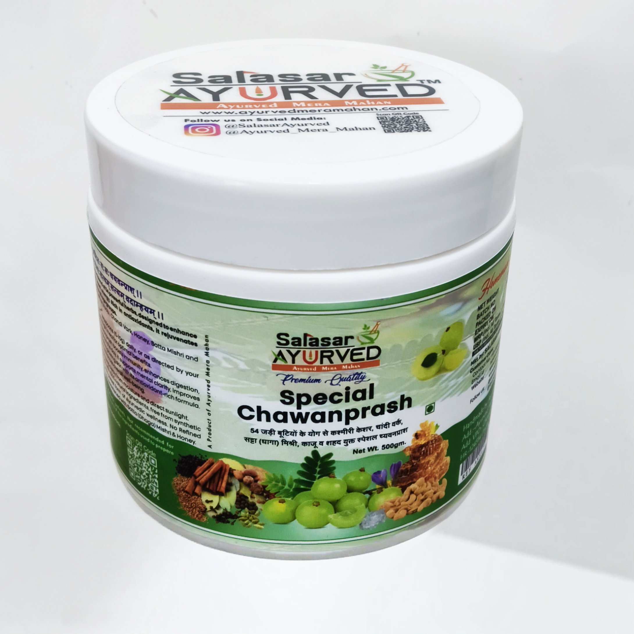 Chawanprash Improves Digestion and Metabolism, Protect and Strengthens the Respiratory System, Antioxidant and Immune-Booster, Other Preventive, Promotive and Curative Health Benefits. Special Chawanprash is a daily dose for your family to build Strength & Stamina.